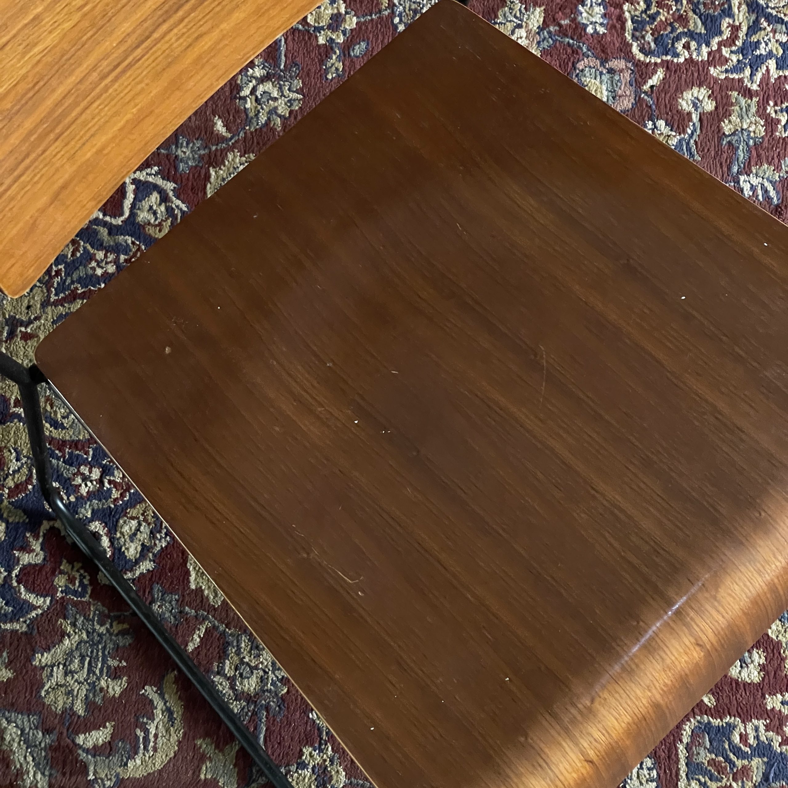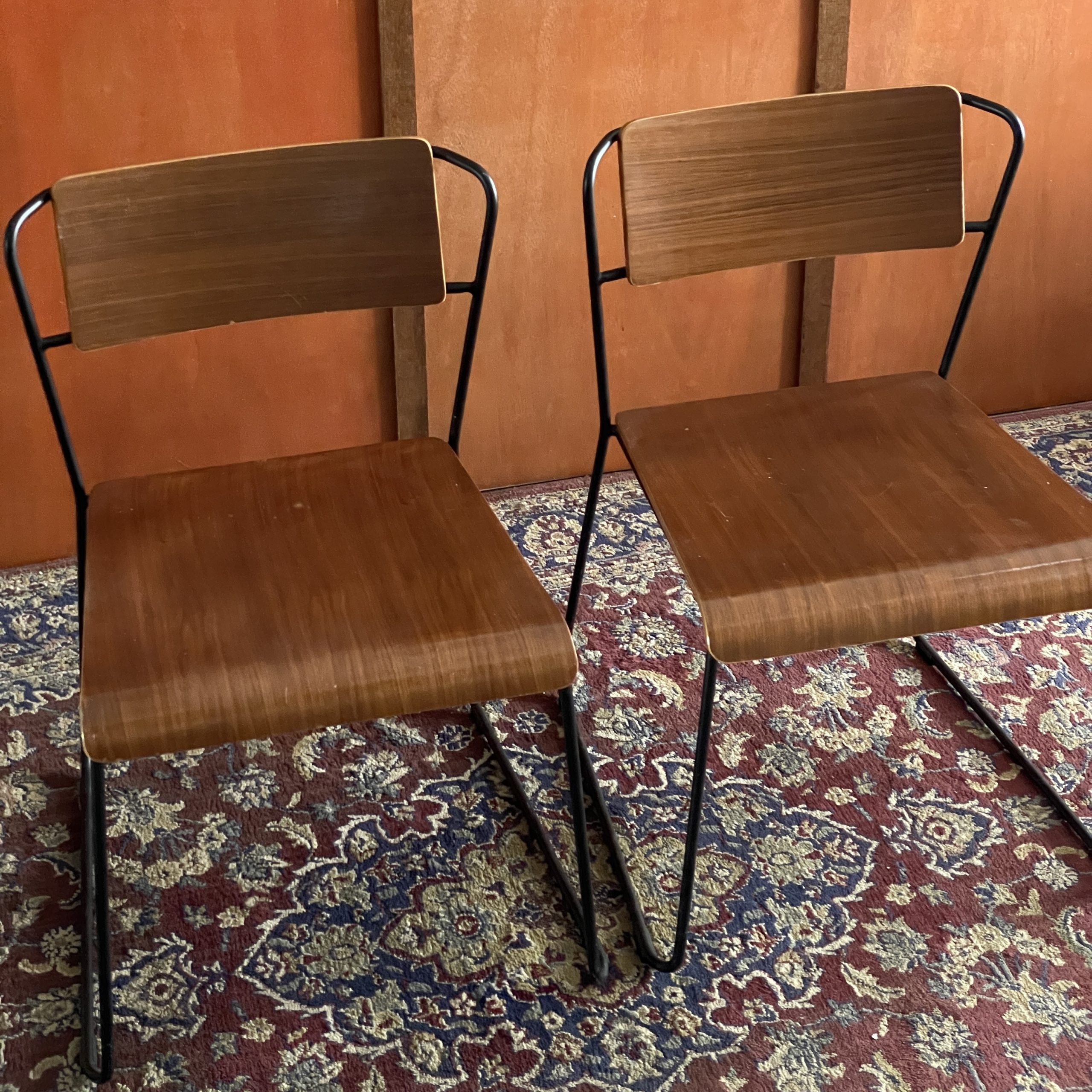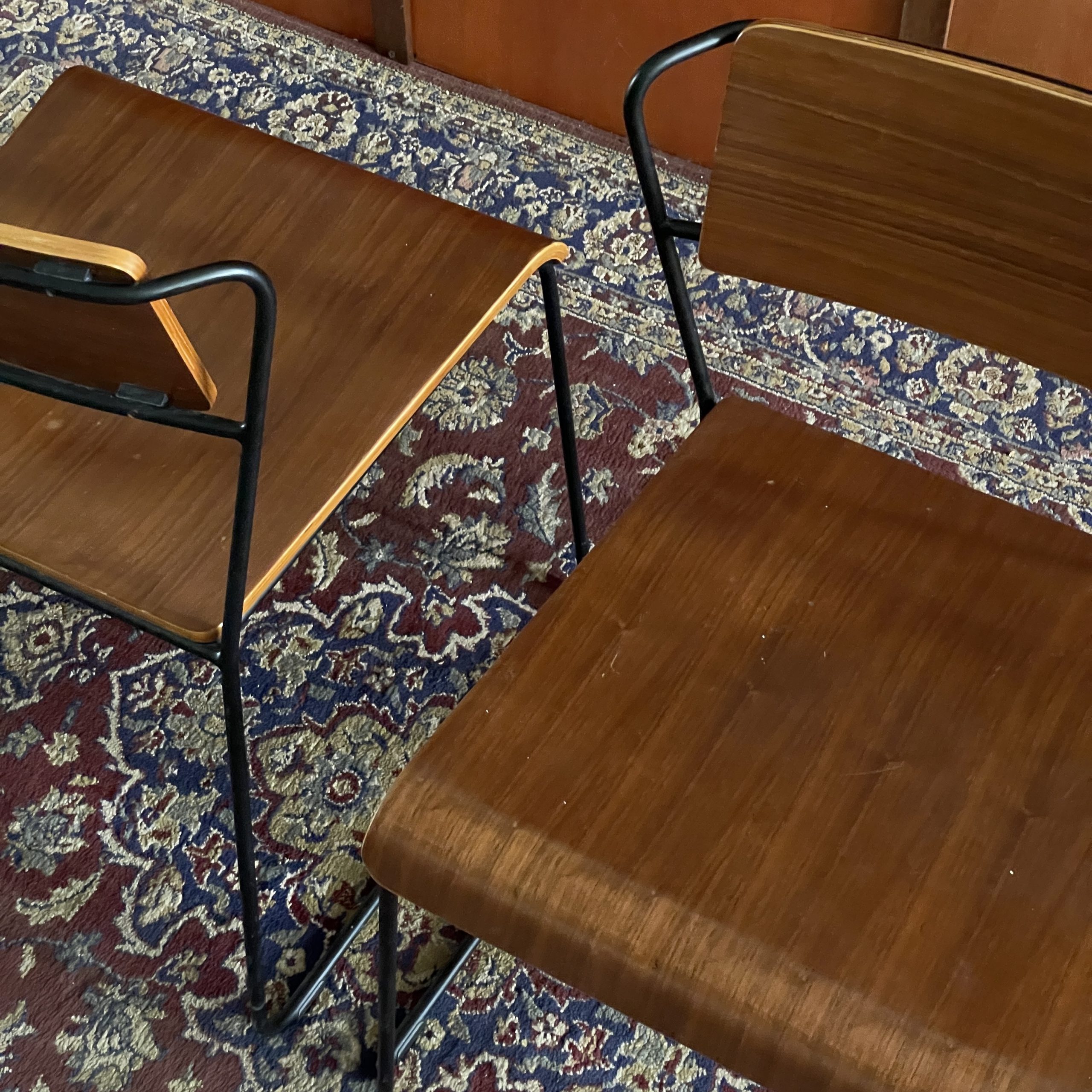 Remarks: Solid wood & solid metal frame material. Walnut wood color. Quite heavy suitable for commercial use. Minor scratches on the seat part.