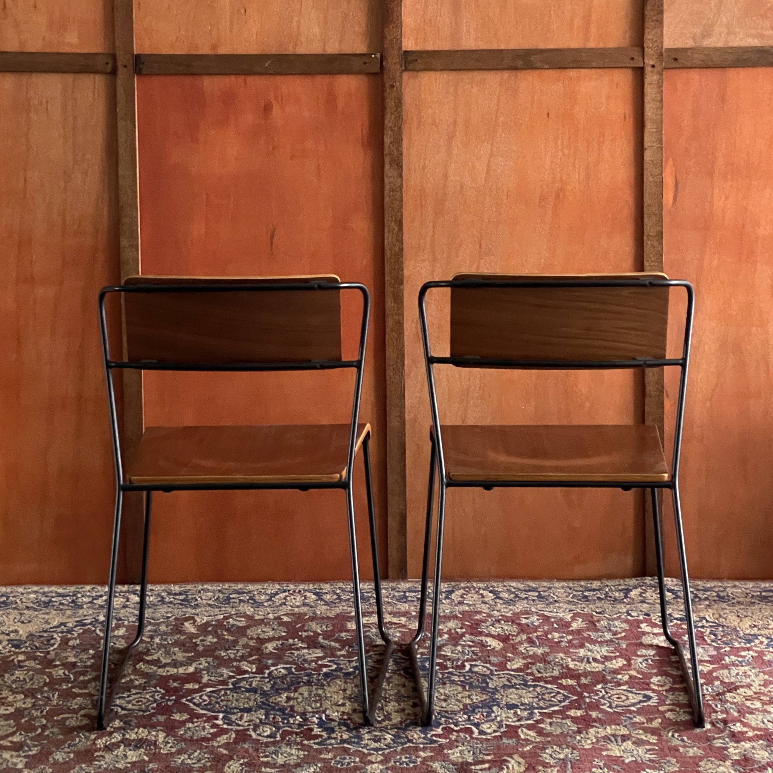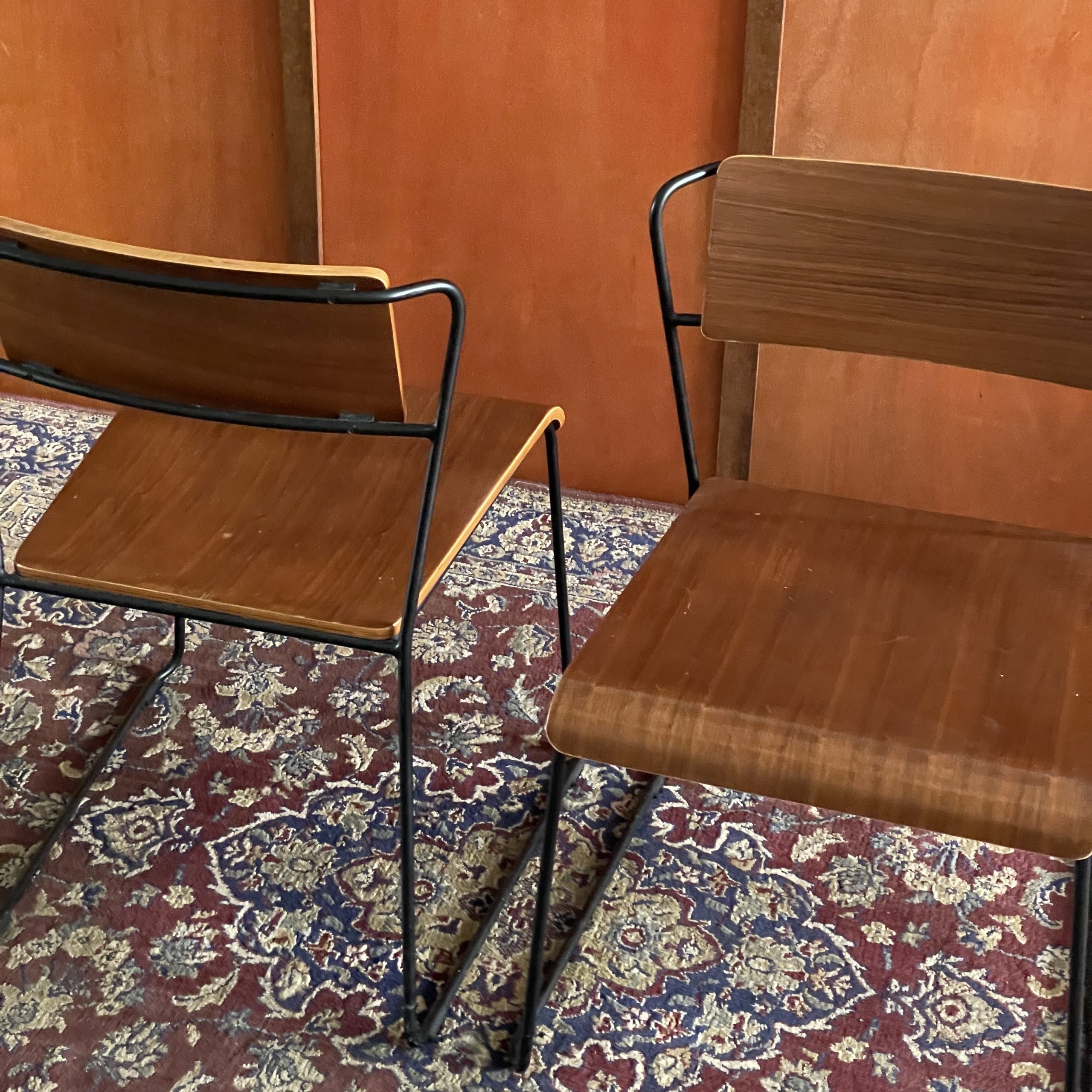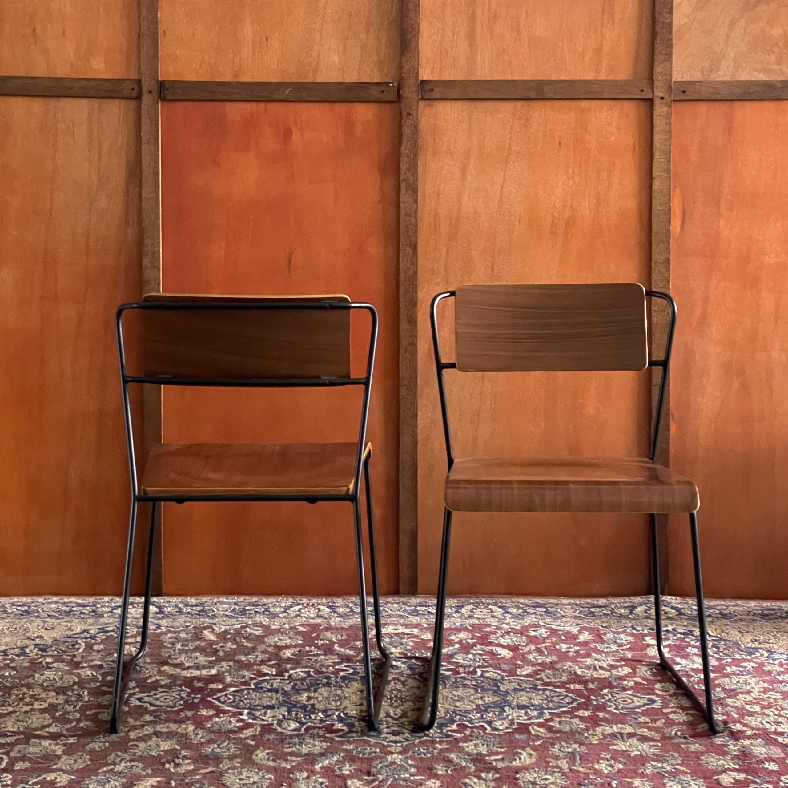 Remarks: Solid wood & solid metal frame material. Walnut wood color. Quite heavy suitable for commercial use. Minor scratches on the seat part.